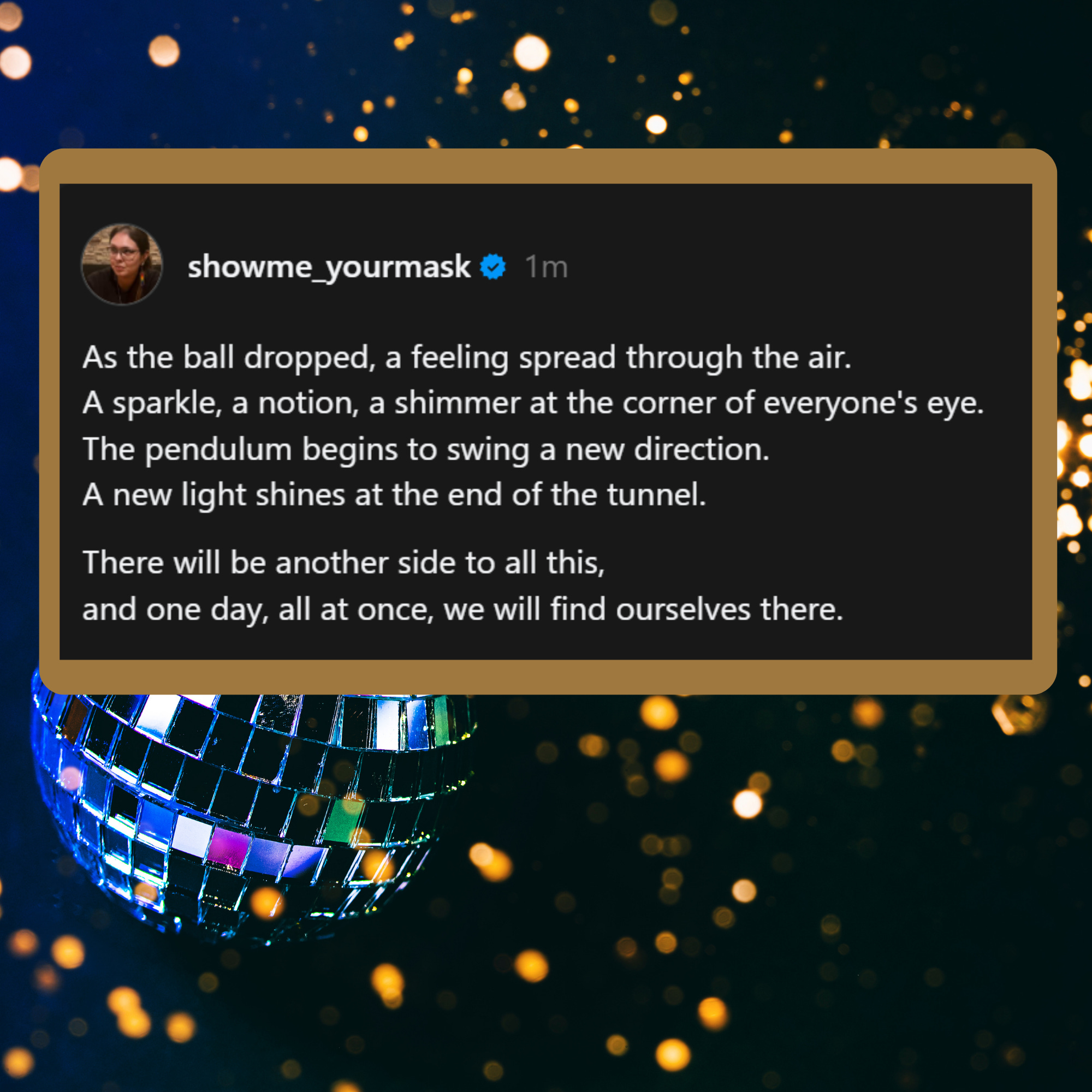 A new light shines at the end of the tunnel. There will be another side to all this,